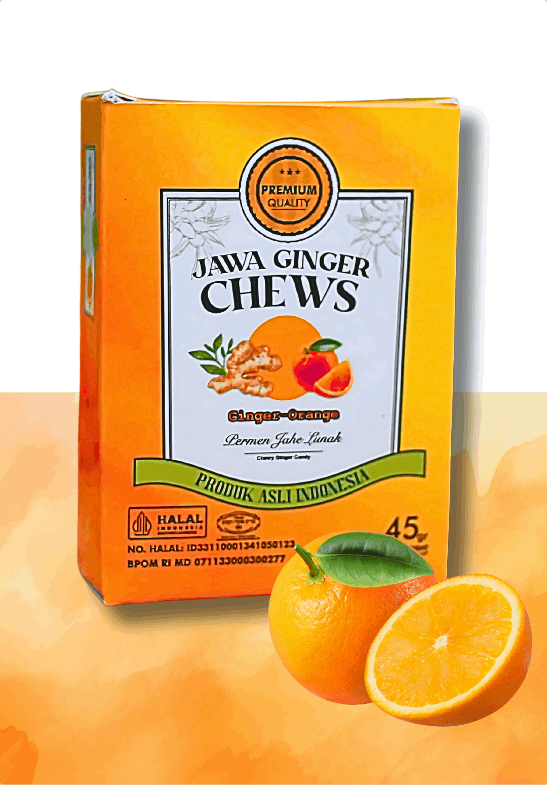 Kombinasi cerah dan menyegarkan antara rasa jahe yang menghangatkan dengan aroma serta rasa jeruk yang manis dan sedikit asam. Rasa jeruk yang segar menyeimbangkan kehangatan jahe, menciptakan permen kenyal yang kaya rasa, dalam setiap gigitan.