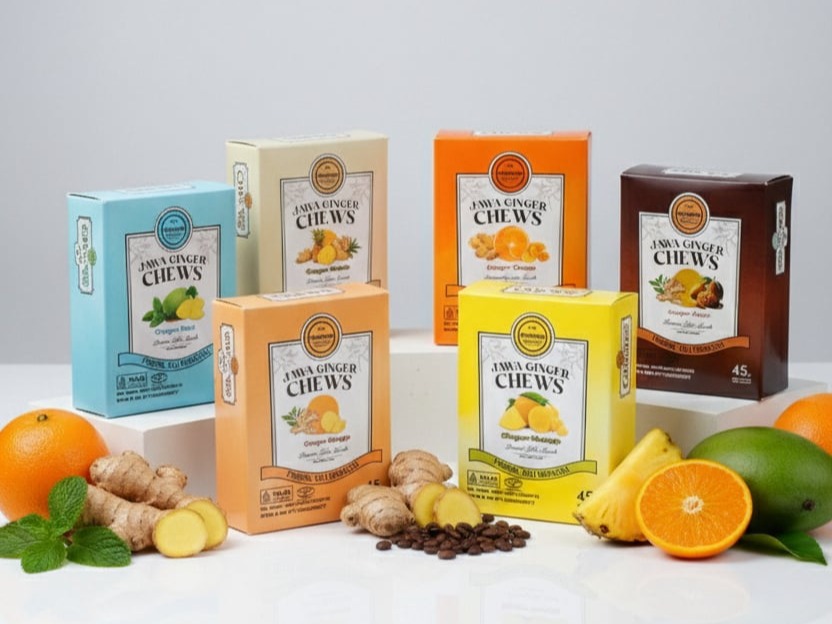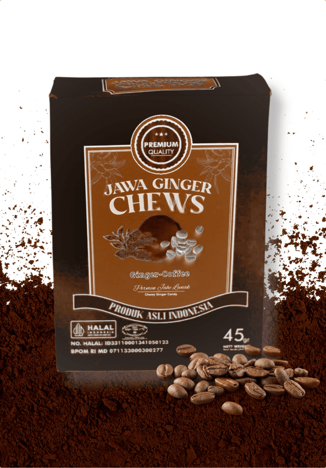 Varian yang menggabungkan rasa jahe yang pedas dengan cita rasa kopi yang mendalam dan kaya. Perpaduan ini menciptakan permen kenyal dengan sensasi bold (tegas), menawarkan kehangatan jahe sekaligus aroma dan rasa pick-me-up dari kopi. Cocok sebagai camilan energi atau teman bersantai.